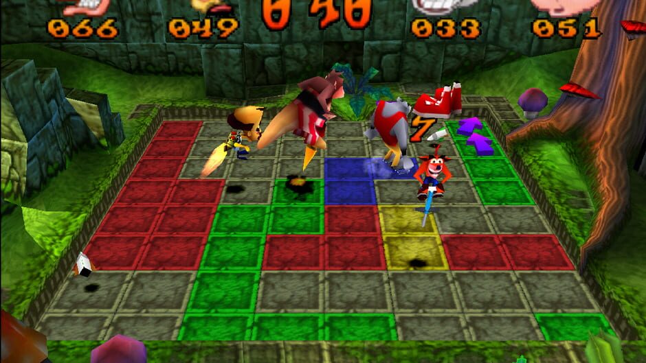 Crash Bash is a party game in which four people can play several mini-games as characters from the Crash Bandicoot series. The gameplay consists of 28 different mini-games and three distinct modes of play: Adventure, Battle, and Tournament. Crash Bash includes multiplayer compatibility for up to four human players with the use of the PlayStation Multitap. The games are organized from a central hub world from which spokes lead to different levels.