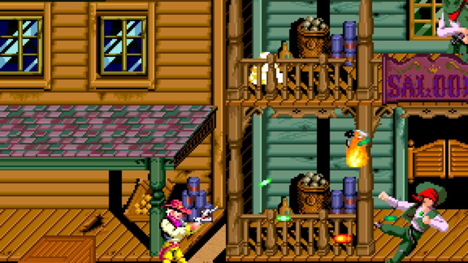 Sunset Riders is a side-scrolling run and gun video game developed and released by Konami in 1991. It is set in the American Old West, where the players take control of bounty hunters who are seeking the rewards offered for various criminals. Each bad guy has a big reward on his head, and they're helped by hordes of bandits, gunslingers, and horse thieves, so pack loads of lead.